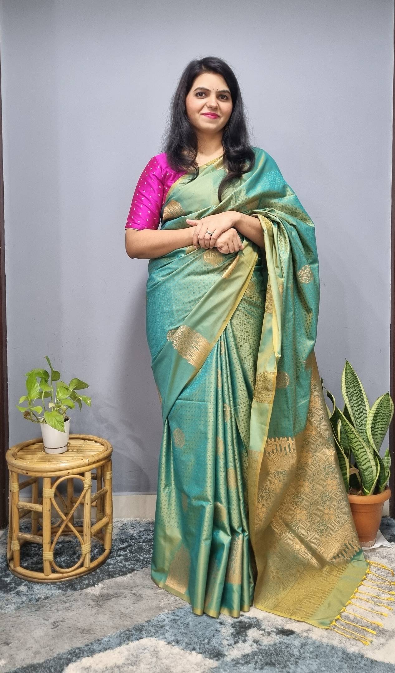 Drape yourself in timeless elegance with our Soft Silk Saree – a perfect blend of luxurious shine and buttery smooth texture.