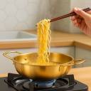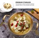 This Stainless Steel 24cm Fry Pan is a versatile and good-quality cooking essential designed for a variety of cooking needs. Whether you're preparing Korean ramen, instant noodles, or fried dishes, this non-stick skillet is the perfect choice for efficient and effortless cooking. The non-stick coating ensures easy food release and quick cleanup, making it ideal for frying, searing, and sautéing. The pan is also great for making paella, gratin, soup, or stock, offering the versatility to handle a range of recipes. Crafted from durable stainless steel, this mini chef’s frying wok is built to last, delivering even heat distribution for consistent cooking results. The brass kadai design adds a touch of elegance to your kitchen while ensuring high performance. The double handles offer a secure and comfortable grip, making it easy to move the pan from stove to table. Ideal for both home kitchens and professional chefs, this multi-purpose cookware is suitable for everyday use or special occasions. Whether you're cooking for yourself or hosting a dinner party, this pan is sure to meet all your cooking needs. Plus, its compact size makes it perfect for smaller portions or tight kitchen spaces. Experience durable, professional-grade performance with this 24cm frying wok.