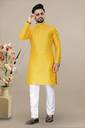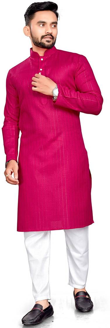 This traditional Indian kurta pajama set includes a top (kurta) with and a bottom (Pajama). Loose fitting sleeves and slits along the sides allow for an easy fit and let air circulate freely through the garment. The pant included in this kurta pajama set has a relaxed fit through the seat and legs for absolute comfort. regular comfortable fitting makes it a great wear.