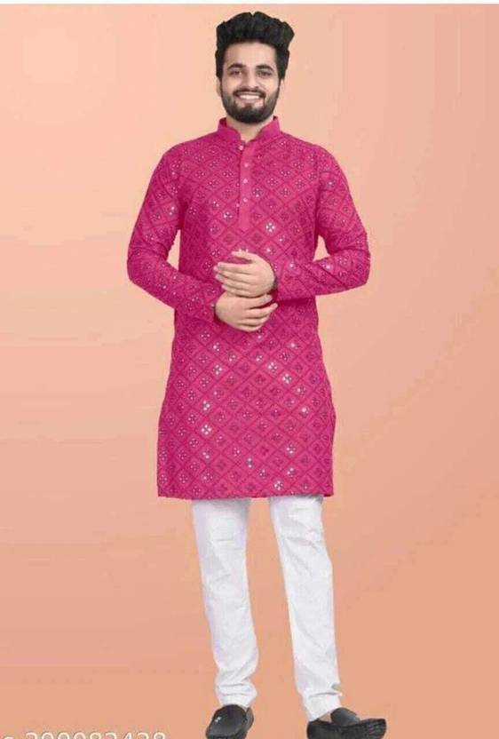 Look your ethnic best wearing this coloured kurta pyjama set. Made from Cotton regular-fit kurta pyjama set comprises a full-sleeved kurta and pyjama to complete your look.
