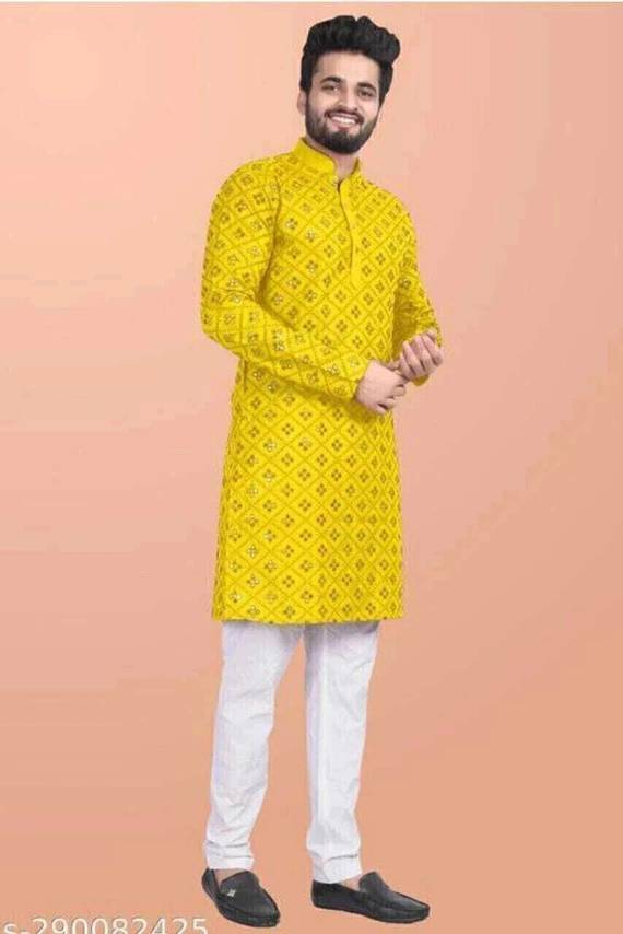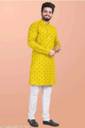 Look your ethnic best wearing this coloured kurta pyjama set. Made from Cotton regular-fit kurta pyjama set comprises a full-sleeved kurta and pyjama to complete your look.