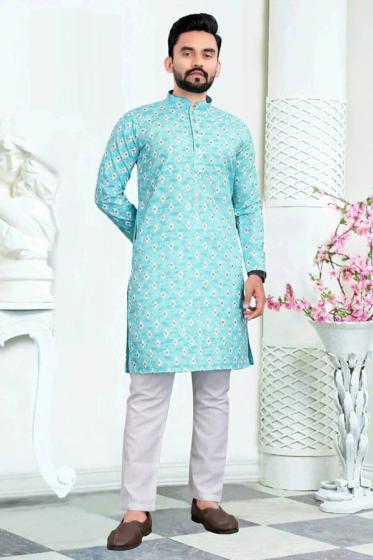 The style you want and the feel you need all rolled into this Kurta Pajama set. This type of complete traditional style is available in the Uri and