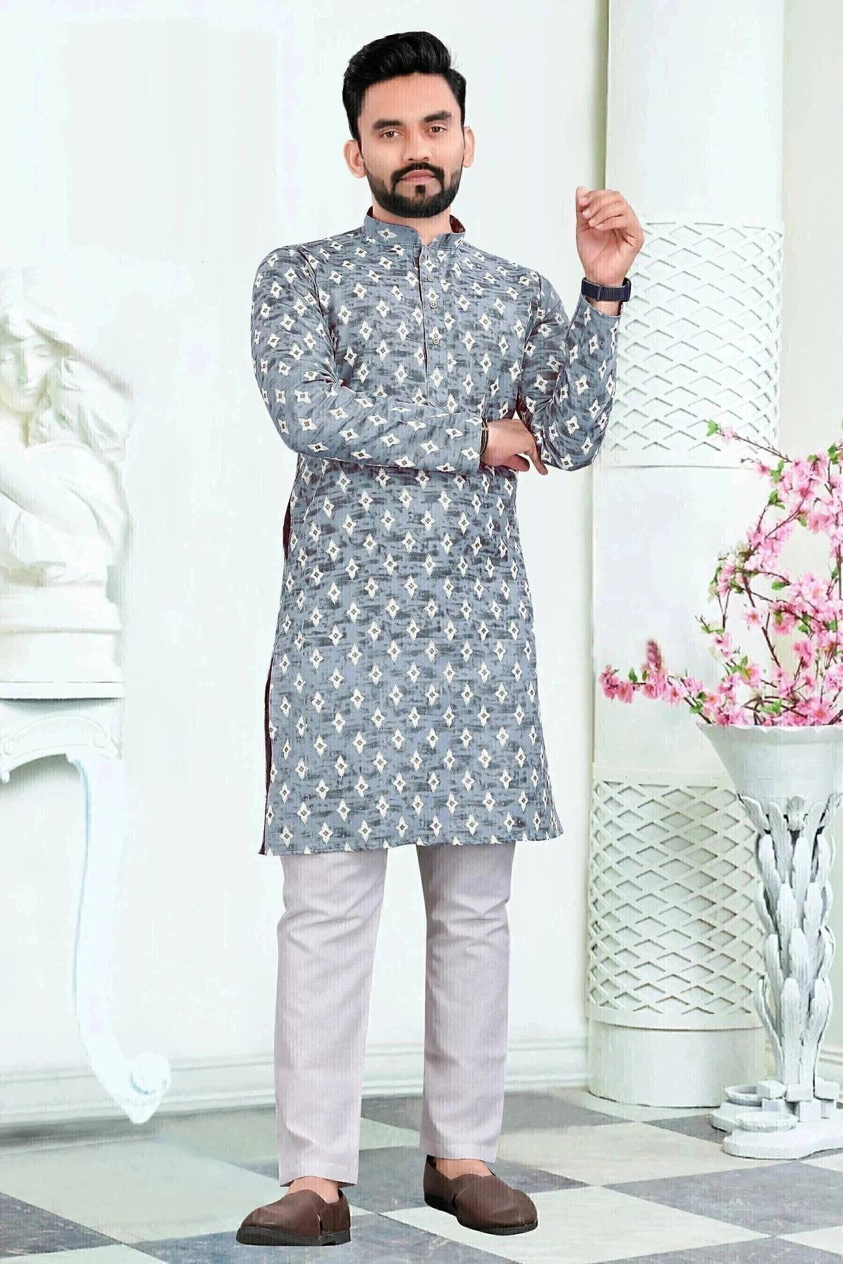 The style you want and the feel you need all rolled into this Kurta Pajama set. This type of complete traditional style is available in the Uri and