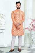 This traditional Indian kurta pajama set includes a top (kurta) with and a bottom (Pajama). Loose fitting sleeves and slits along the sides allow for an easy fit and let air circulate freely through the garment. The pant included in this kurta pajama set has a relaxed fit through the seat and legs for absolute comfort. regular comfortable fitting makes it a great wear. The style you want and the feel you need all rolled into this Kurta Pajama set. This type of complete traditional style is available in the Uri and store. From expert tailoring to collars secured with our enforced stitching, you get that sharp, pull together look without the iron Our kurta pajama are made in a factory in India, where the values of craftsmanship have been passed down for generations. The master touch of handmade tailoring can be seen in our kurta pajama collection. Our fabric and print are handpicked by a team of textile experts with an eye for quality and originality.