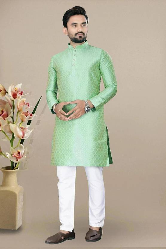 Look your ethnic best wearing this coloured kurta pyjama set. Made from Cotton regular-fit kurta pyjama set comprises a full-sleeved kurta and pyjama to complete your look.