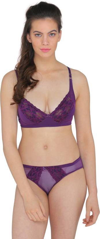 VALENTINE Bra & Panty Set Printed Purple Lingerie Set