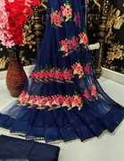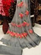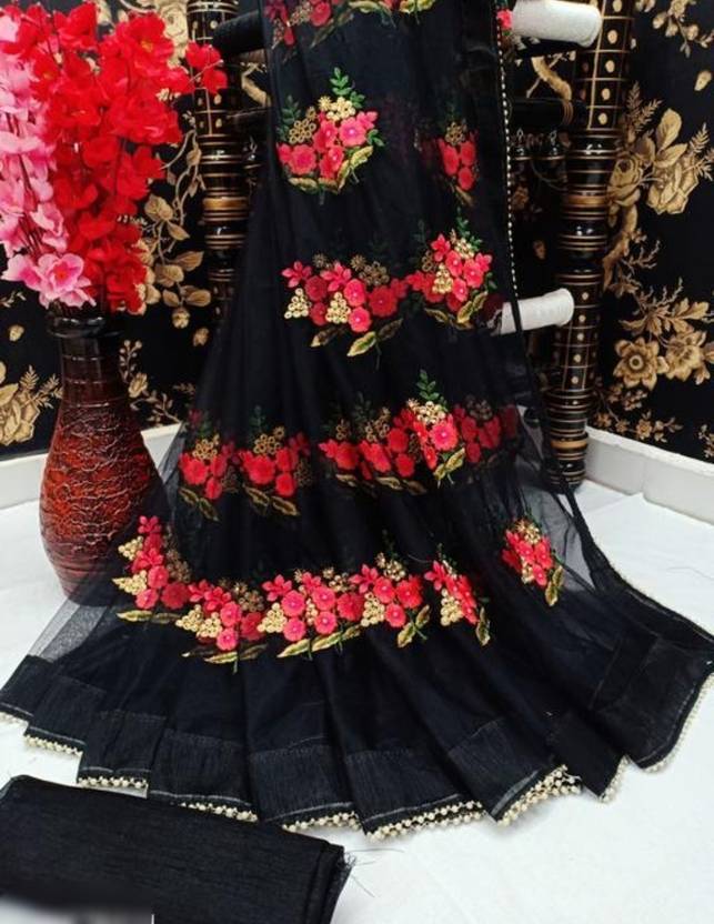 vallavi fashion Embroidered Bollywood Net Saree (Black)