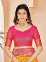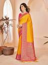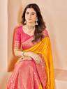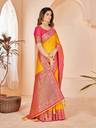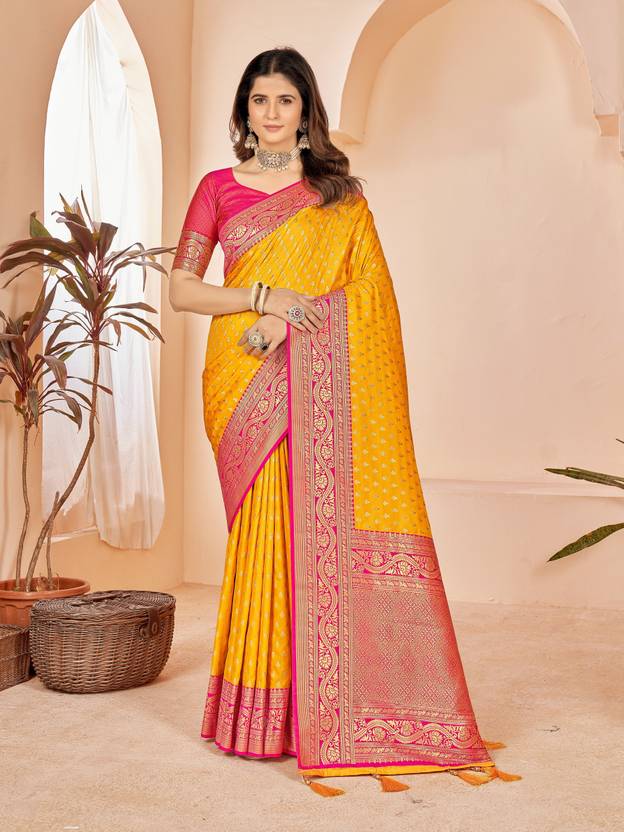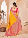 Mehrang Self Design Banarasi Pure Silk Saree (Yellow, Pink)