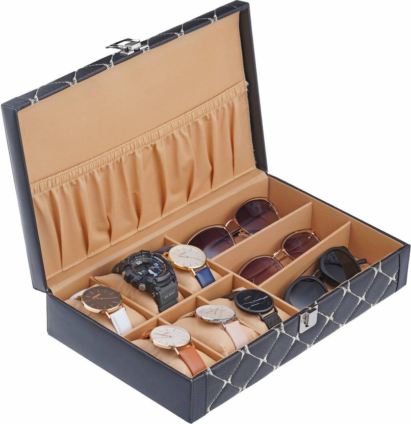 Valley PU Leather Sunglasses case , goggles box , eyeglasses organizer and wrist watch box ,watch case , jewelry storage box Watch Box (Black, White, Holds 9 Watches)