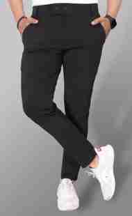 YATMA Men Regular Fit Black Lycra Blend Trousers