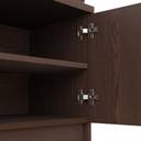 Apart from storing footwear, this shoe rack also has an upholstered seat that allows you to sit and comfortably wear shoes.