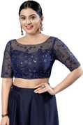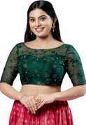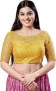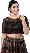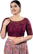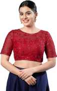 Vamas Women's Net Padded Back Open Elbow Sleeves Saree Blouse