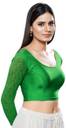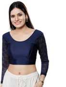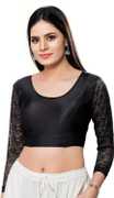 A gorgeous stretchable lycra blouse with floral net along the back neckline and sleeves. Should go with any occasion.