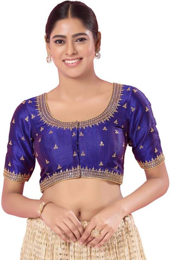 Vamas Women's Mulbury Silk Padded Front Open Elbow Sleeves Saree Blouse