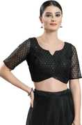 Vamas Women's Net Padded Back Open Elbow Sleeves Saree Blouse