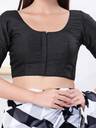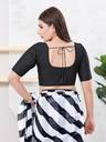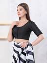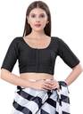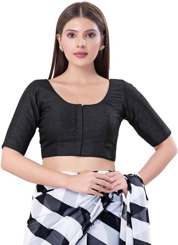 A must-have plain dupion silk saree blouse featuring a flattering princess cut and convenient front hook closure. The elegant round neckline is mirrored in the back, accented by a stylish dori tie-up. Available in a range of beautiful colors to complete any saree look.