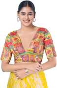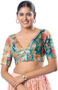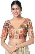 Vamas-The Designer Blouses Women's Brocade Padded Back Open Elbow Sleeves Saree Blouse