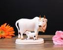 Cow With Calf Statue in Marble Dust, 9CM Holy Cow Idol, Showpiece for Home Decor, Handmade Divine Cow, Mother Cow with Baby Calf, kamdhenu