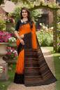 Printed Sambalpuri Pure Cotton Saree (Orange)