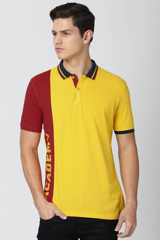 VAN HEUSEN Colorblock Men Polo Neck Yellow T-Shirt