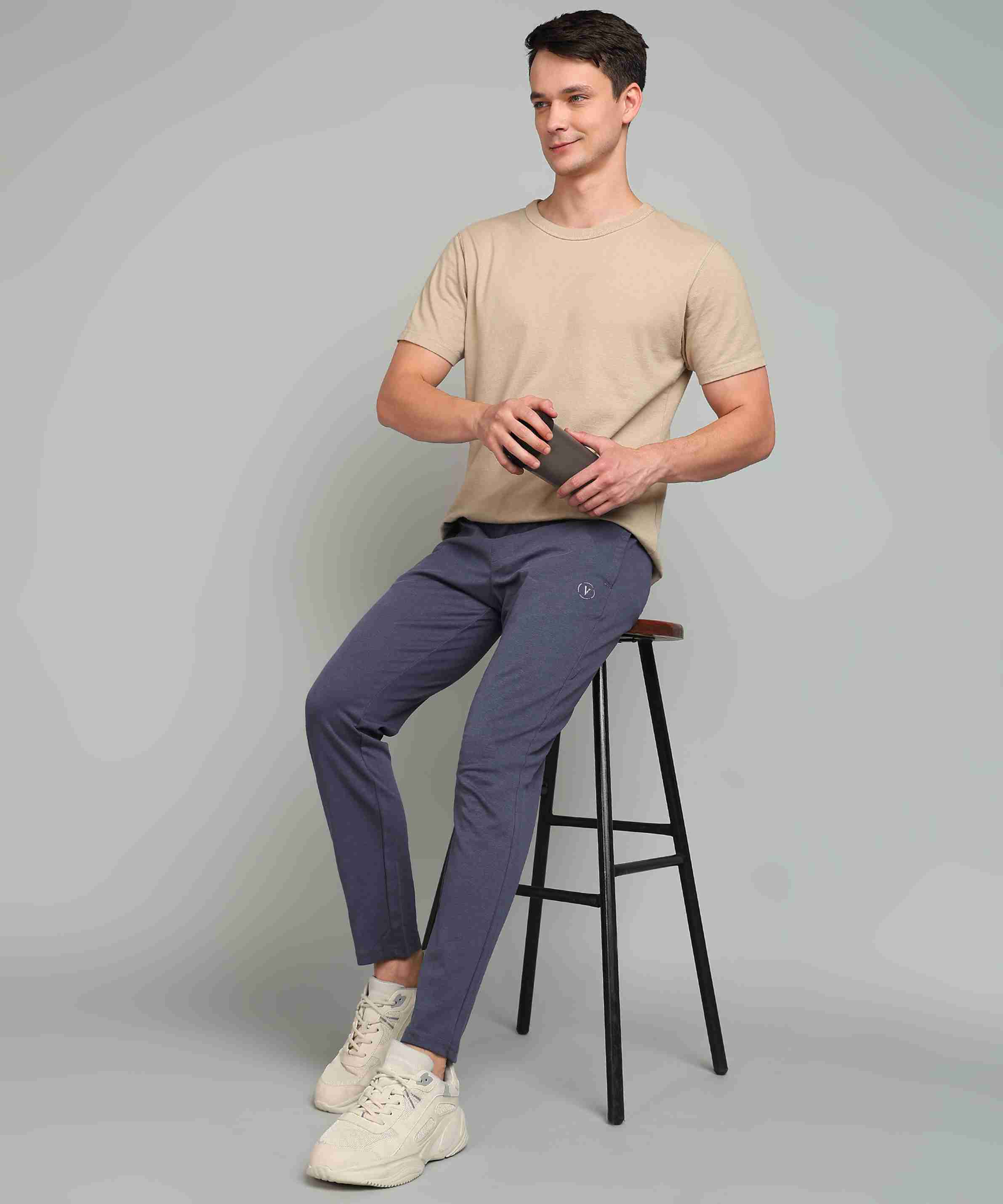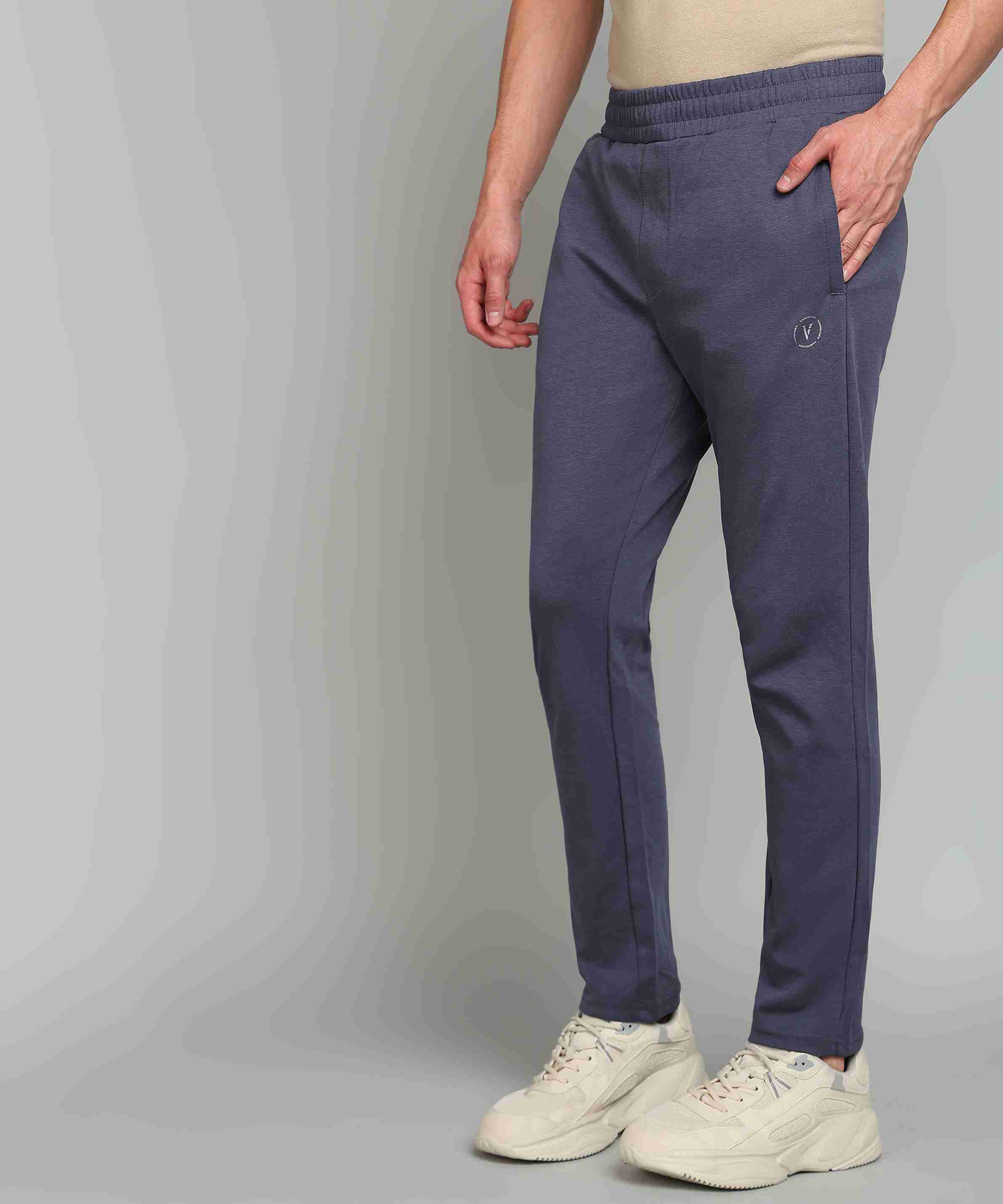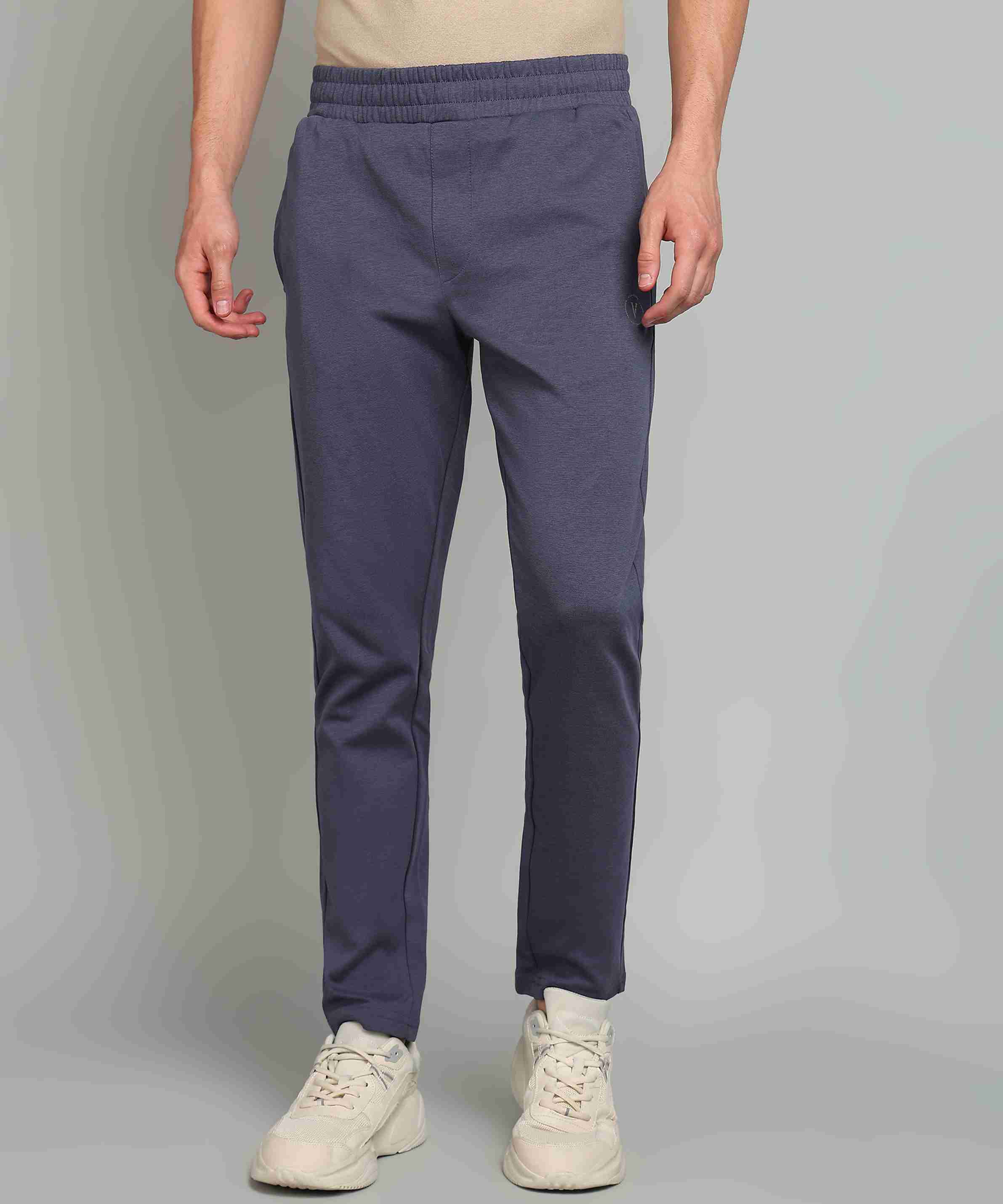 Men Solid Dark Blue Track Pants