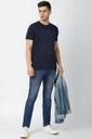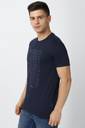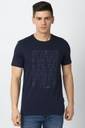 VAN HEUSEN Men Graphic Print Round Neck Pure Cotton Dark Blue T-Shirt