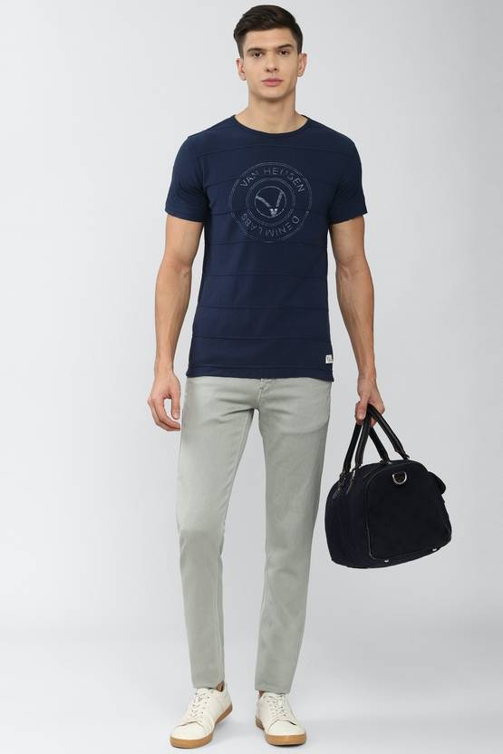 Look suave and stylish in this Navy Graphic Print Crew Neck T-shirt from Van Heusen Denim Labs by Van Heusen. Fashion meets performance for an unmatched style quotient in Active Wear with Easy Dry, Antimicrobial & Reflect technologies. Sport an all-new style with Van Heusen Flex. Stay on top of your game on the field and off it.