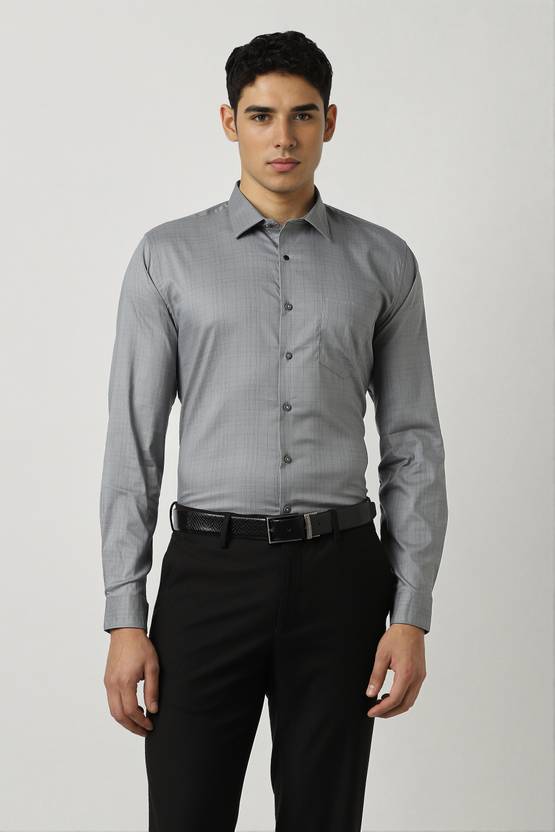 VAN HEUSEN Men Self Design Formal Dark Green Shirt