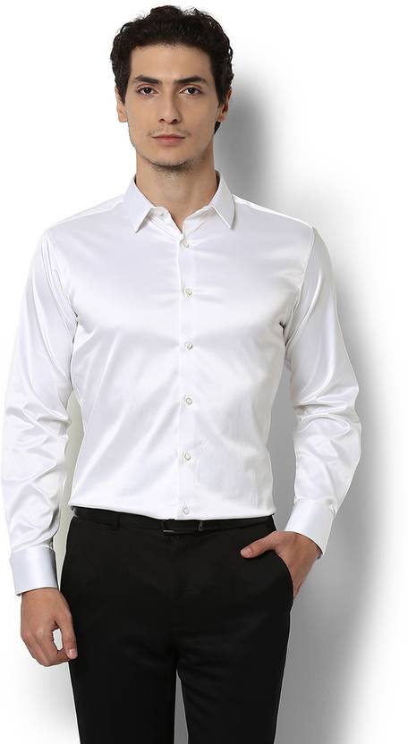 Mark your presence effortlessly at any party wearing this white shirt from Van Heusen. Crafted from a poly-nylon blend with a hint of stretch, this design is tailored for a slim silhouette. Pair this full sleeve shirt with black trousers and leather loafers to seal your look.