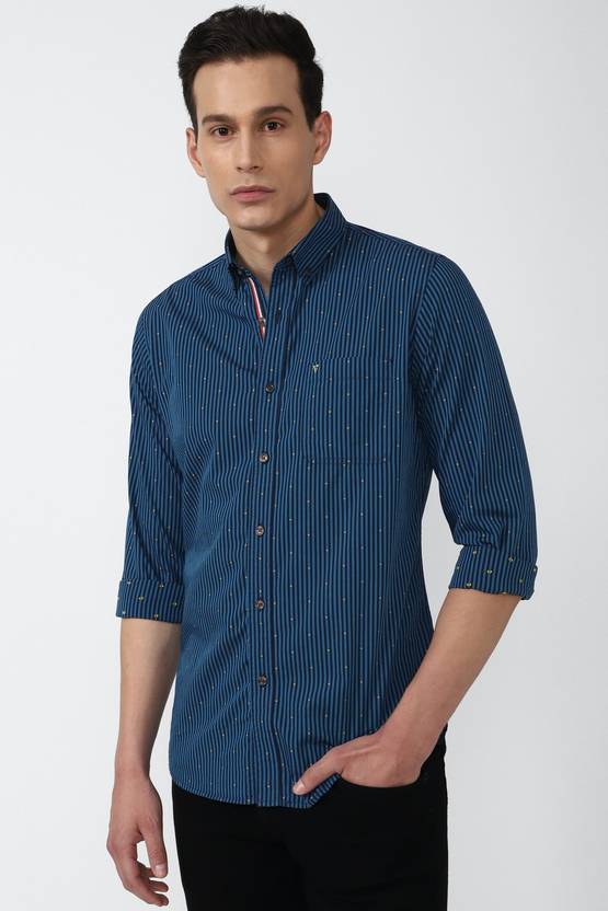 VAN HEUSEN Men Striped Casual Blue Shirt