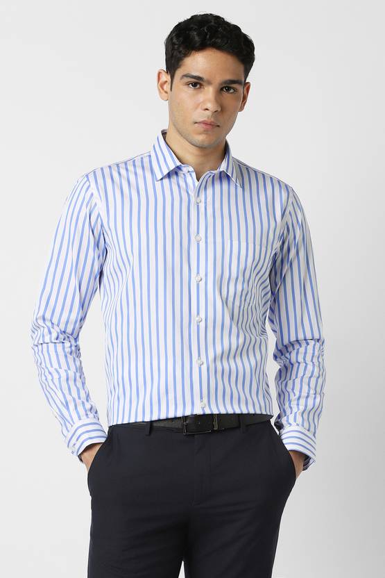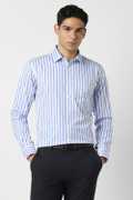VAN HEUSEN Men Striped Formal Blue Shirt
