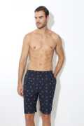 Athleisure Men Navy Printed Soft Suede Touch Functional Pocket Shorts