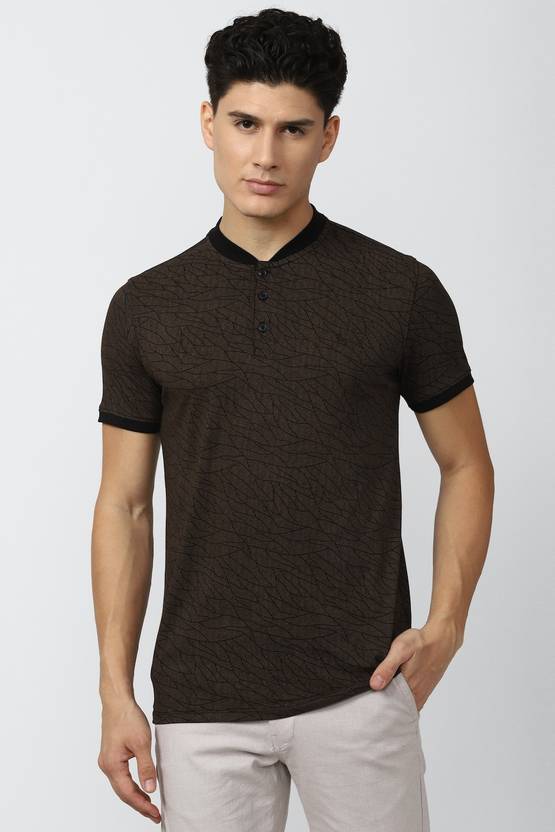 Look suave and stylish in this Brown Print Stylized Neck T-shirt from V Dot by Van Heusen.