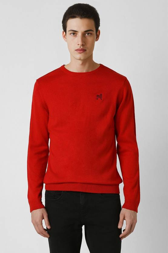 Men Solid Crew Neck Red Sweater