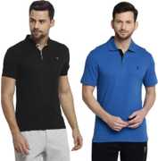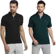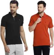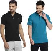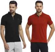 Pack of 2 Men Solid Polo Neck Polycotton Multicolor T-Shirt