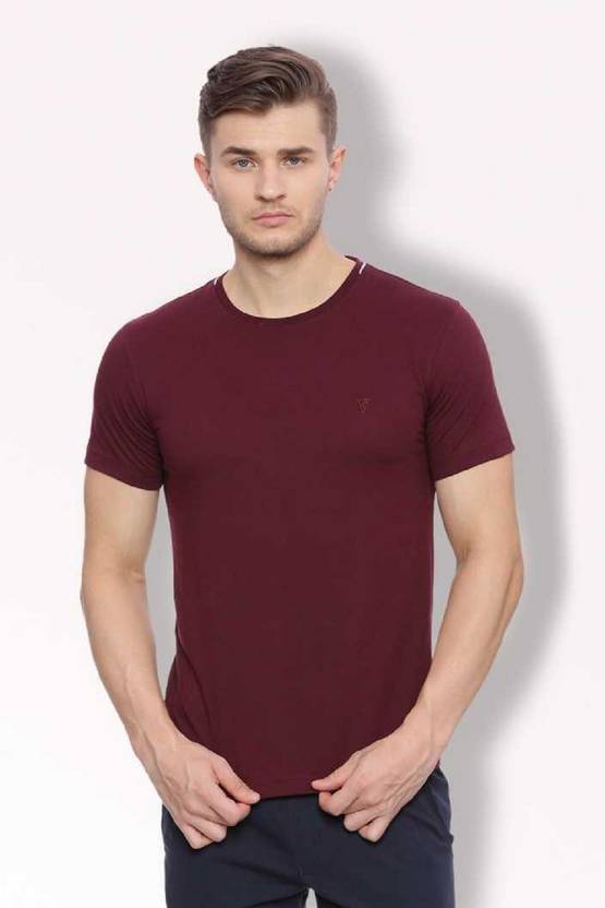 VAN HEUSEN Solid Men Round Neck Maroon T-Shirt