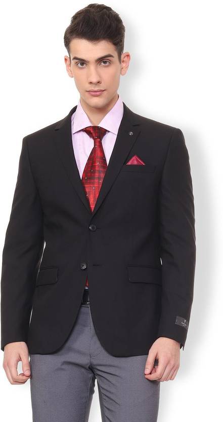 VAN HEUSEN Solid Single Breasted Casual Men Blazer (Black)