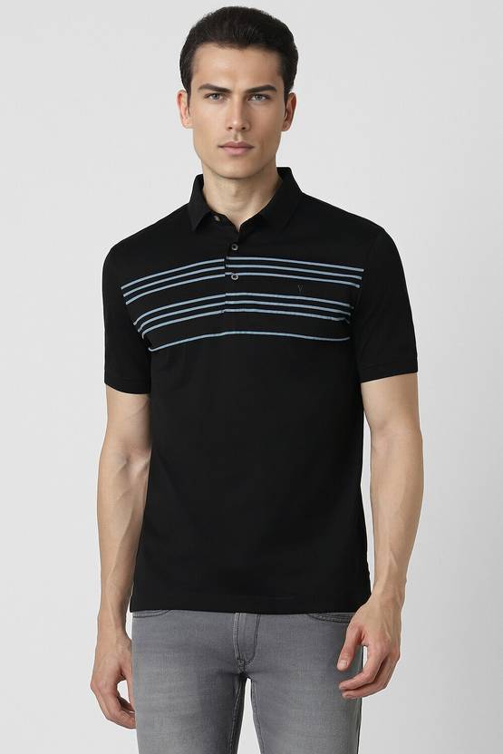 VAN HEUSEN Striped Men Polo Neck Black T-Shirt