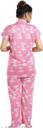 Adorned with elegant cloud print placed across the shirt and pyjama, this women's night suit set introduces a calm and airy aesthetic. The repeating design is spaced evenly to maintain balance while covering both pieces with consistent visual interest. Thus, the soft cloud shapes lend a relaxed tone to the overall look, keeping the appearance light and soothing without any heavy graphic detail.