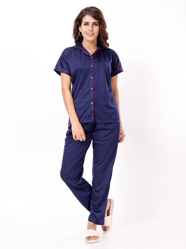Vania's grace Women Solid Grey Shirt & Pyjama set
