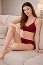 Elegant solid maroon colour for a classy look, Adjustable straps for a customised fit, Matching mid-rise panty with smooth finish