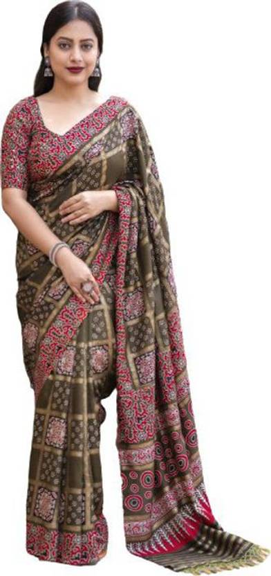 This Pashmina Silk Edition has been launched by VANISAA. Soft Silk Saree with Ajrakh Style and Foil Print. Jalar on Pallu. Soft Pashmina allover Printed Blouse. Product color may slightly vary due to photographic lighting sources on your monitor settings or device setting and lighting used in mode. Care Instructions: Hand Wash or Dry Clean Only. Do not Dry it into Direct Sunlight.