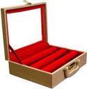 Vanityporium Chudi box 3 roll with transparent lid Red, 3 Rod Fancy Aluminium Framed Bangle Box with a Faux Leather Effect Covering. bangles storage organiser Vanity Box (Golden)