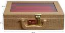 Aluminium framed bangle box with a faux leather effect covering . Perfect for storing bangles, make up, jewellery, cosmetics and toiletries with its robust design and easy grip carry handle. Faux maroon suede interior for a luxury finish with a number lock to keep your items safe and secure. A stunning bangle box crafted beautifully for salon professionals and perfect for home use. This gorgeous bangle box is made from aluminium which guarantees durability. The stylish handle also ensures easy transportation with its lightweight nature. The case comes complete with a number lock. Not only complementing the silver hinges but provides ultimate security, for example when taking it away for the weekend; you know your bangles will be safe and secure. lenth- 25, hight- 9, width- 30 cm