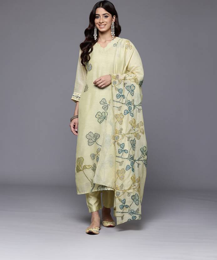 Women Chanderi Kurta Pant Dupatta Set