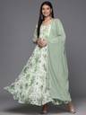 Pack of 2 Women Printed Georgette Anarkali Kurta With Attached Dupatta (White, Green)