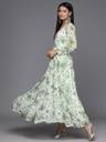 White And Green All Over Big Floral Printed, V Neck, Full Sleeves, Anarkali Kurta