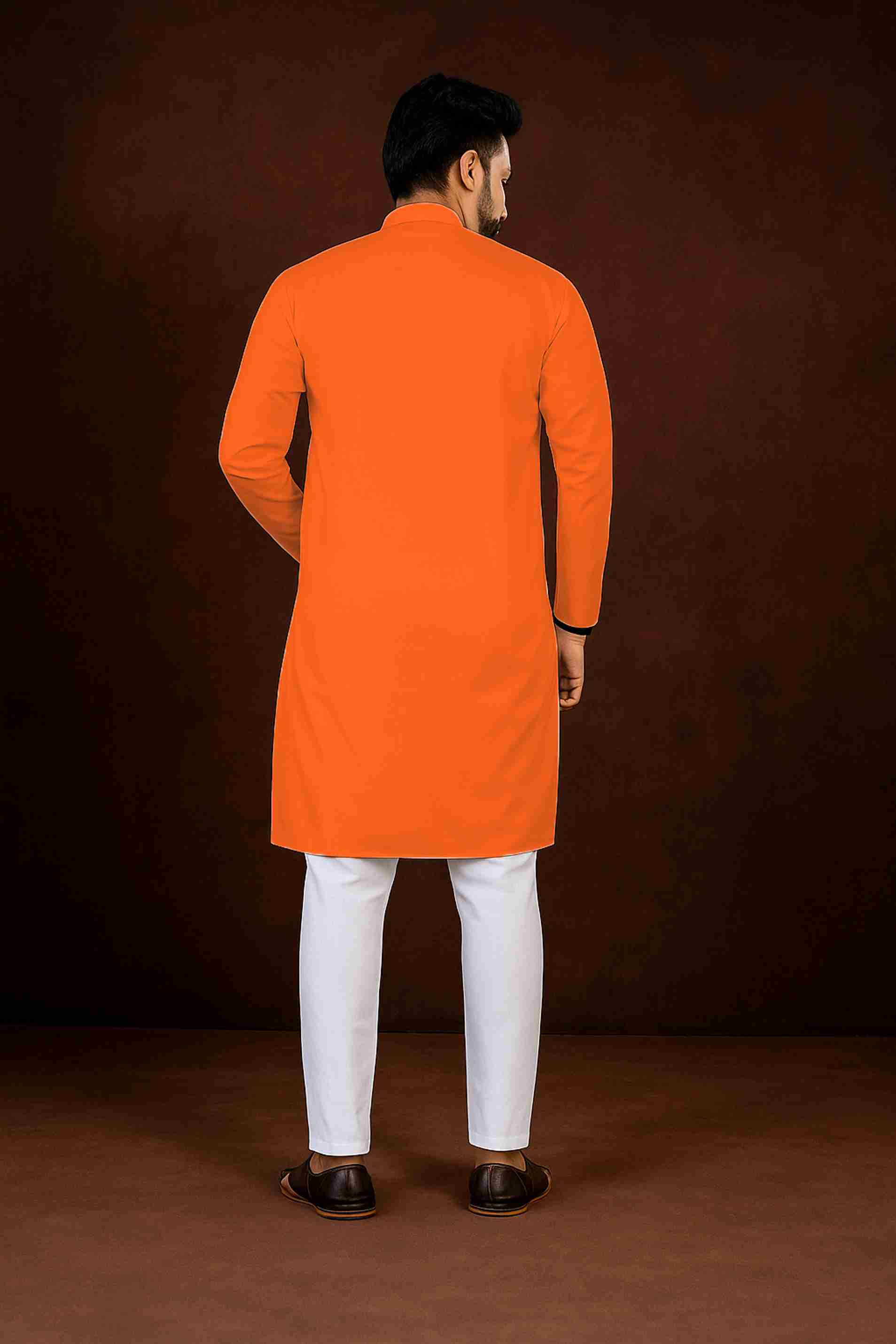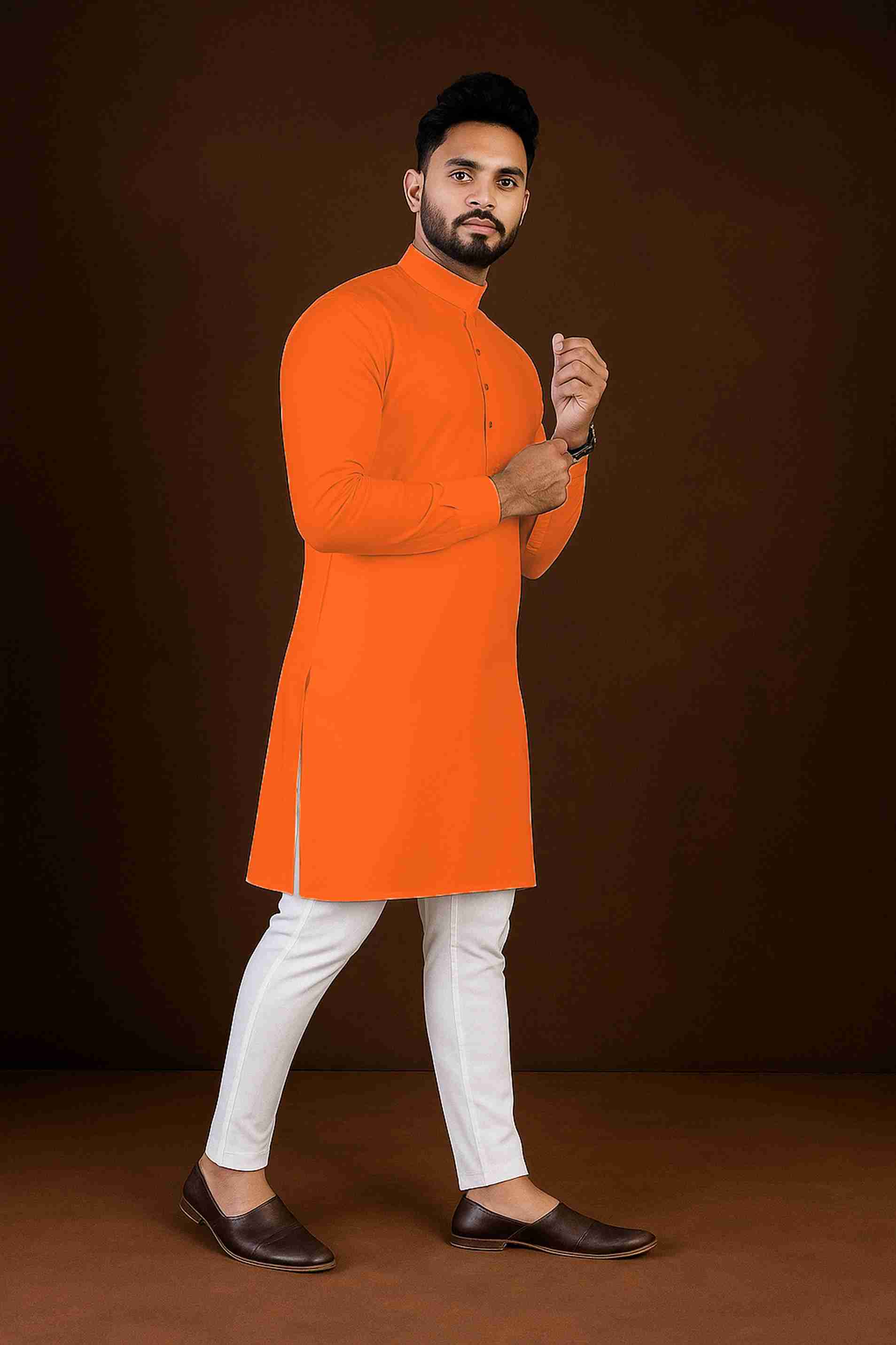 Men Solid Cotton Blend Straight Kurta (Orange)