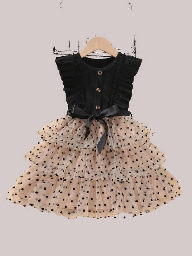 VARDA CREATION Girls Midi/Knee Length Casual Dress (Black, Sleeveless)