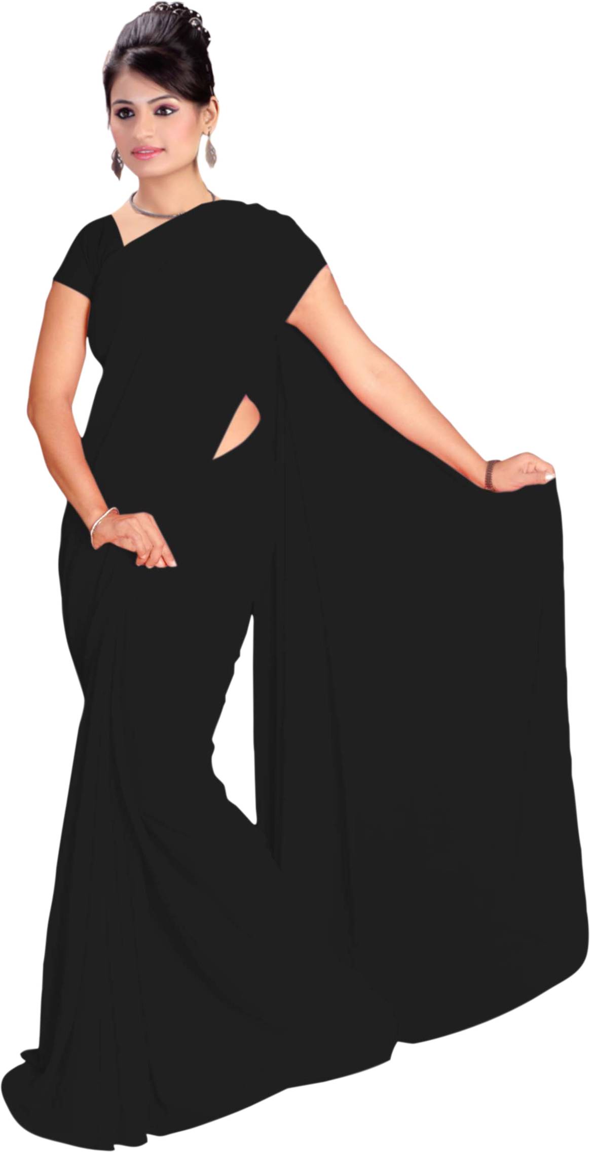 Vardan PRINTS Solid/Plain Bollywood Georgette Saree (Black)